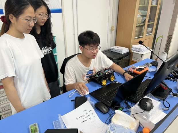 在助教李卓然讲解指导下,团组成员进行了基于AT89C52单片机的循迹小车的培训,系统性地了解了AT89C52单片机的核心原理及基础的C语言。通过动手实践,各小组都亲自完成了自己循迹小车所需的各种硬件模块的安装与连接,及小车自动循迹的代码,最终实现了小车稳定、准确地沿着预定轨道运行。