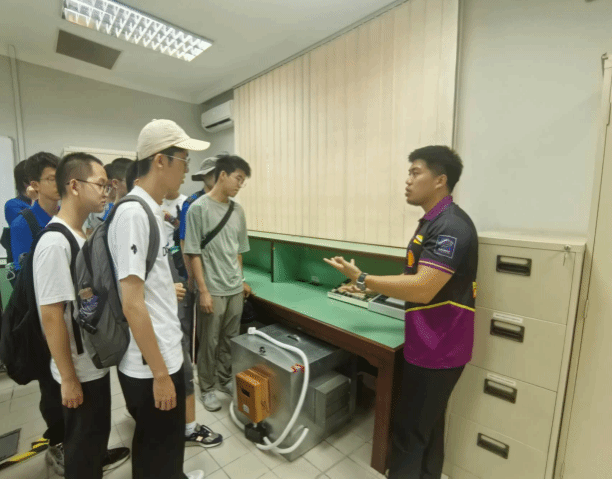 在UTB校方的安排下,代表团深度参访了该校的图书馆、体育馆、人工智能(AI)实验室、科技创新实验室、工程学大楼、机械工程实验室以及电子科学实验室等重要教学科研场所。在AI实验室,学生们近距离接触了先进的视觉感应设备和基于人工智能的机器人系统,切身感受了前沿高端科技的魅力,洞察了未来技术向智能化、无人化发展的强劲趋势,极大激发了专业学习热情;在工程学大楼,代表团参观了电力摩托车研发车库,深入了解了赛车的结构原理与设计理念,拓展了专业知识视野;在电子科学实验室,学生们系统学习了电子电路领域的前沿知识,掌握了基础电路逻辑,并了解了示波器、3D打印机等关键设备的应用原理,深化了对专业实践的理解。