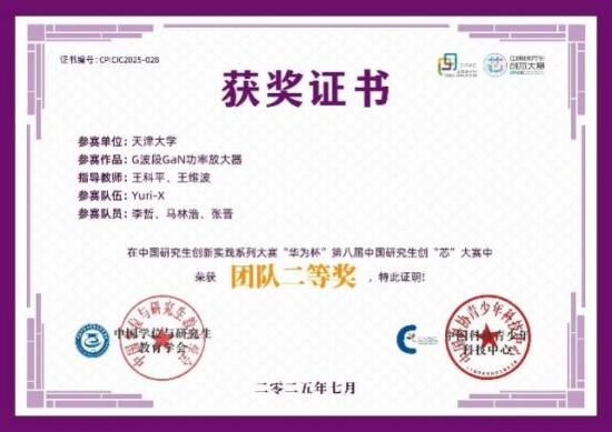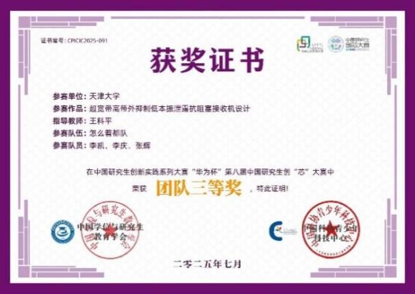 女同av 互联感知集成电路与系统团队的李哲和马林浩,以及中国电子科技集团第五十五研究所的张晋三位同学以题为“G波段GaN功率放大器”的作品,获得大赛全国二等奖,团队的指导老师为:王科平教授和王维波研究员。
