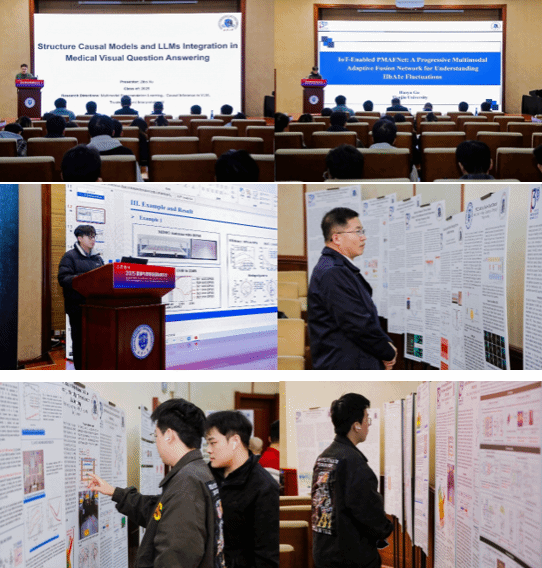 会议休息时段,会场展示的学术海报成为师生交流的核心区域。大家围绕海报内容深入探讨研究方法、分享学术见解,在充分的思想碰撞中营造了浓厚的学术氛围,进一步激发了全体参会者的科研创新热情。