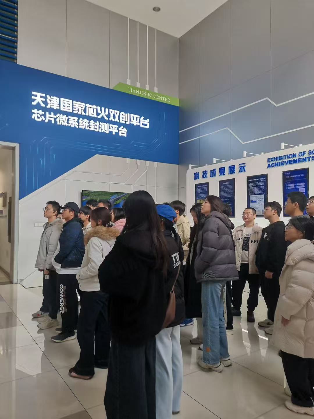 首先,同学们观看了天津国家芯火双创平台的宣传片,了解到该平台是全国十家芯火双创平台之一,是北方集成电路领域首个特色产业化平台。随后,同学们跟随相关工程师参观了北方首个特色封测线,车规级半导体可靠性测试中心。