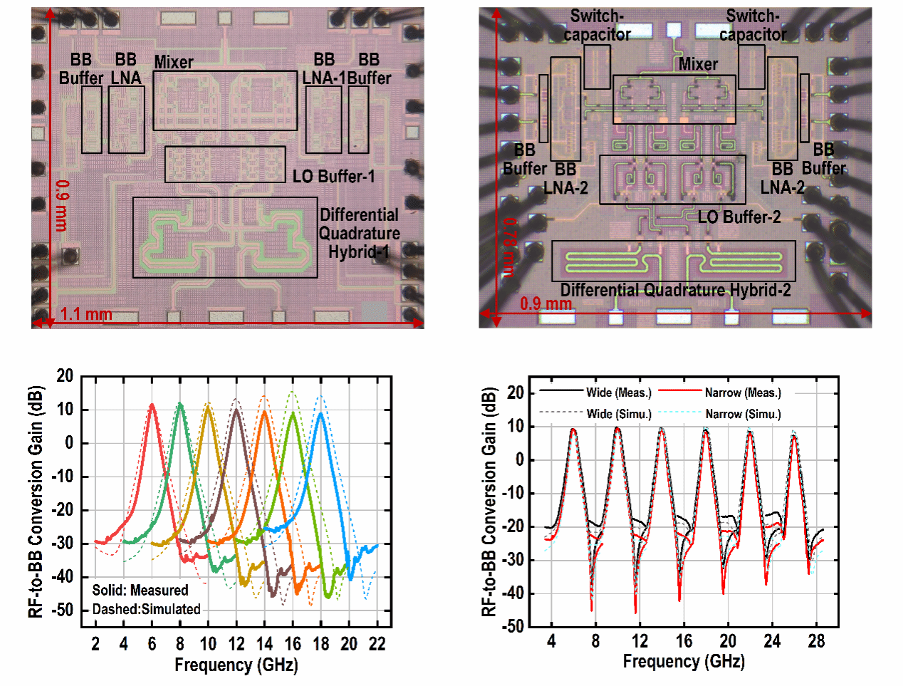 成果四:Sub-6GHz宽带可重构抗阻塞射频接收机芯片