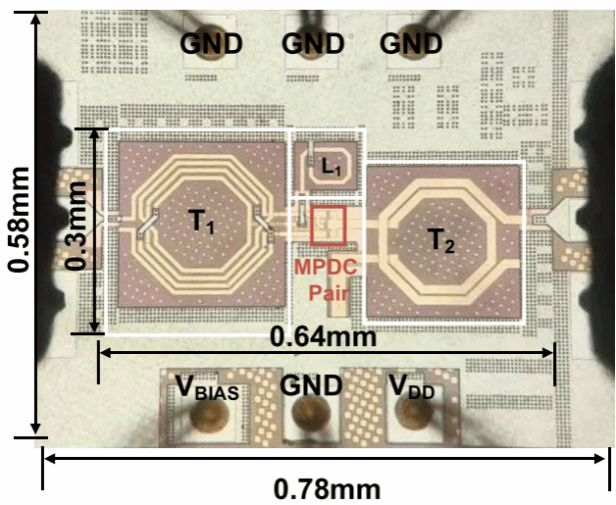 该工作以“Design and Analysis of a 22.6-to-73.9 GHz Low-Noise Amplifier for 5G NR FR2 and NR-U Multiband/Multistandard Communications”为题发表,第一作者为博士生赵增龙,通讯作者为孟凡易教授。