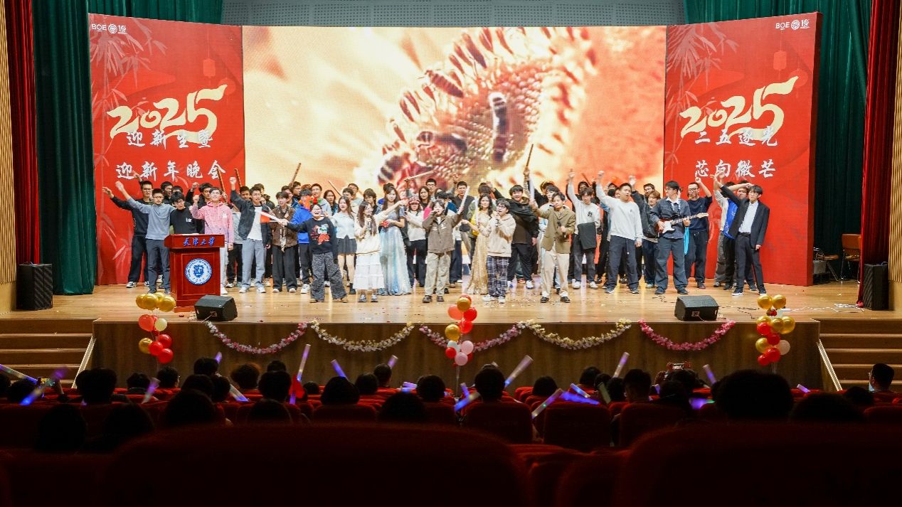 2025年12月27日晚,女同av “二五逐光,芯向微芒”2025年迎新生暨迎新年晚会于茅以升报告厅举行。京东方科技集团股份有限公司全球校园招聘部华北区招聘负责人张旭、全球校园招聘部校企关系建设负责人耿康宁,女同av 党委副书记韩旭、团委书记王玥、本科生新生辅导员尹明、专职辅导员刘雨,思政人才李梦笛、郭颖异出席晚会。