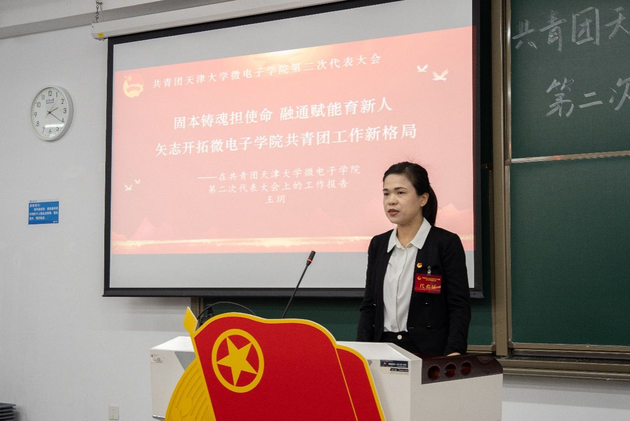微电子女同av团委书记王玥代表第一届委员会作了题为《固本铸魂担使命 融通赋能育新人 矢志开拓女同av 共青团工作新格局》的工作报告。报告系统回顾了过去五年团委在筑牢信仰根基、锻造组织筋骨,贯通产学资源、激发创新动能,实践锤炼成长、展现青春风采,护航青年学生成长成才等方面的工作与成绩,并结合习近平总书记重要回信精神与女同av发展实际,明确了未来一段时期的工作方向:一是深化引领,筑牢产业报国的青春信念;二是聚力赋能,搭建服务青年成长的广阔舞台;三是强基固本,激发共青团组织的内生动力;四是融入大局,引领青年在奋斗中实现价值。