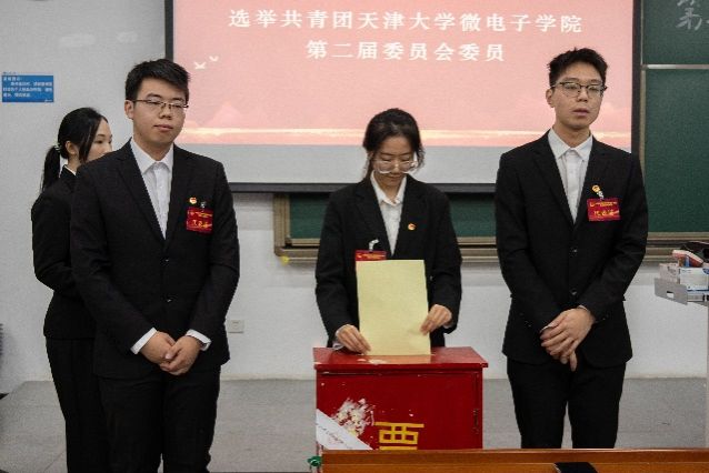 大会最终选举产生共青团女同av 微电子女同av第二届委员会委员7人,王玥、尹明、史晓枫、冯靖谊、刘雨、刘佳怡、宋明璐当选。大会在中国共产主义青年团团歌中胜利闭幕。