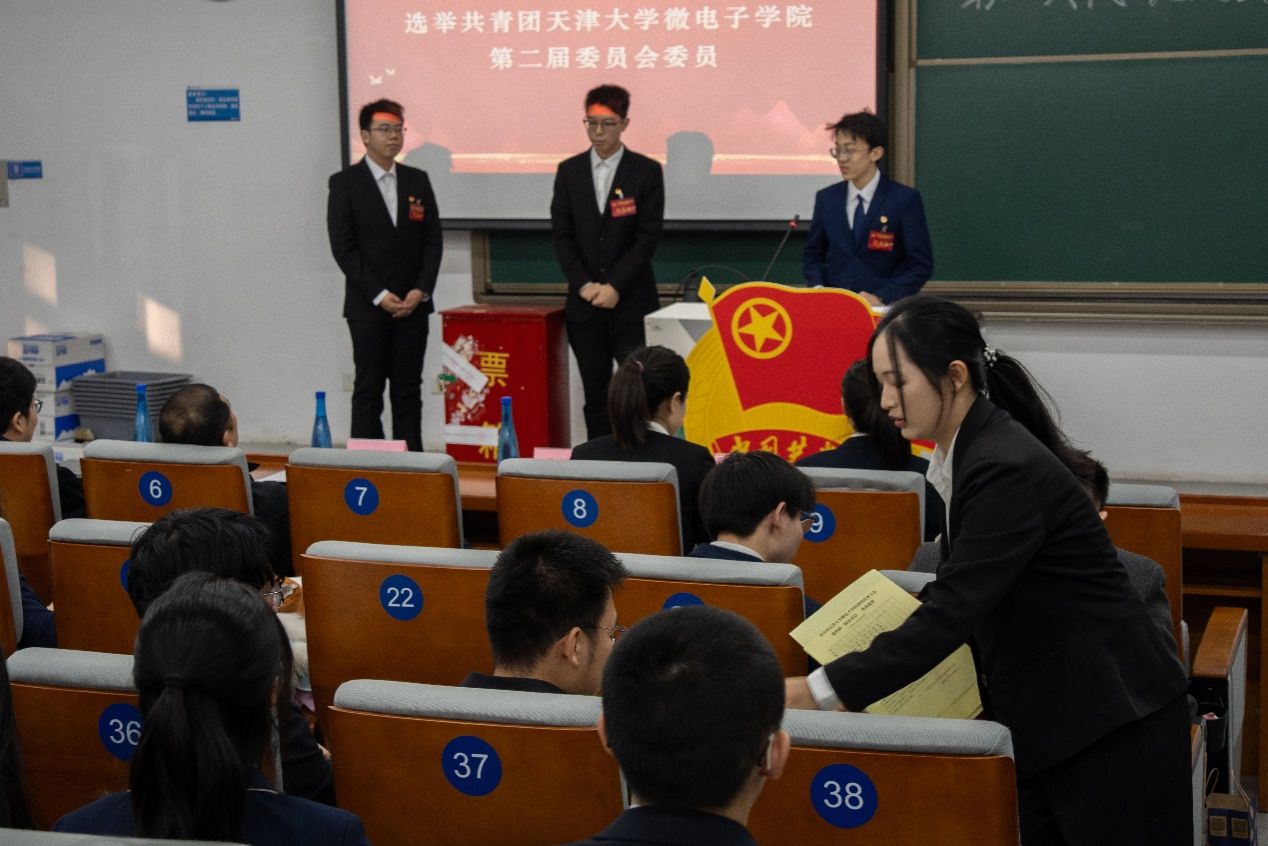 随后,大会审议并通过共青团女同av 微电子女同av第二次代表大会选举办法(草案)以及总监票人、监票人建议名单。主持人宣布总计票人、计票人名单后,由总监票人姚正煊主持选举并介绍候选人基本情况。