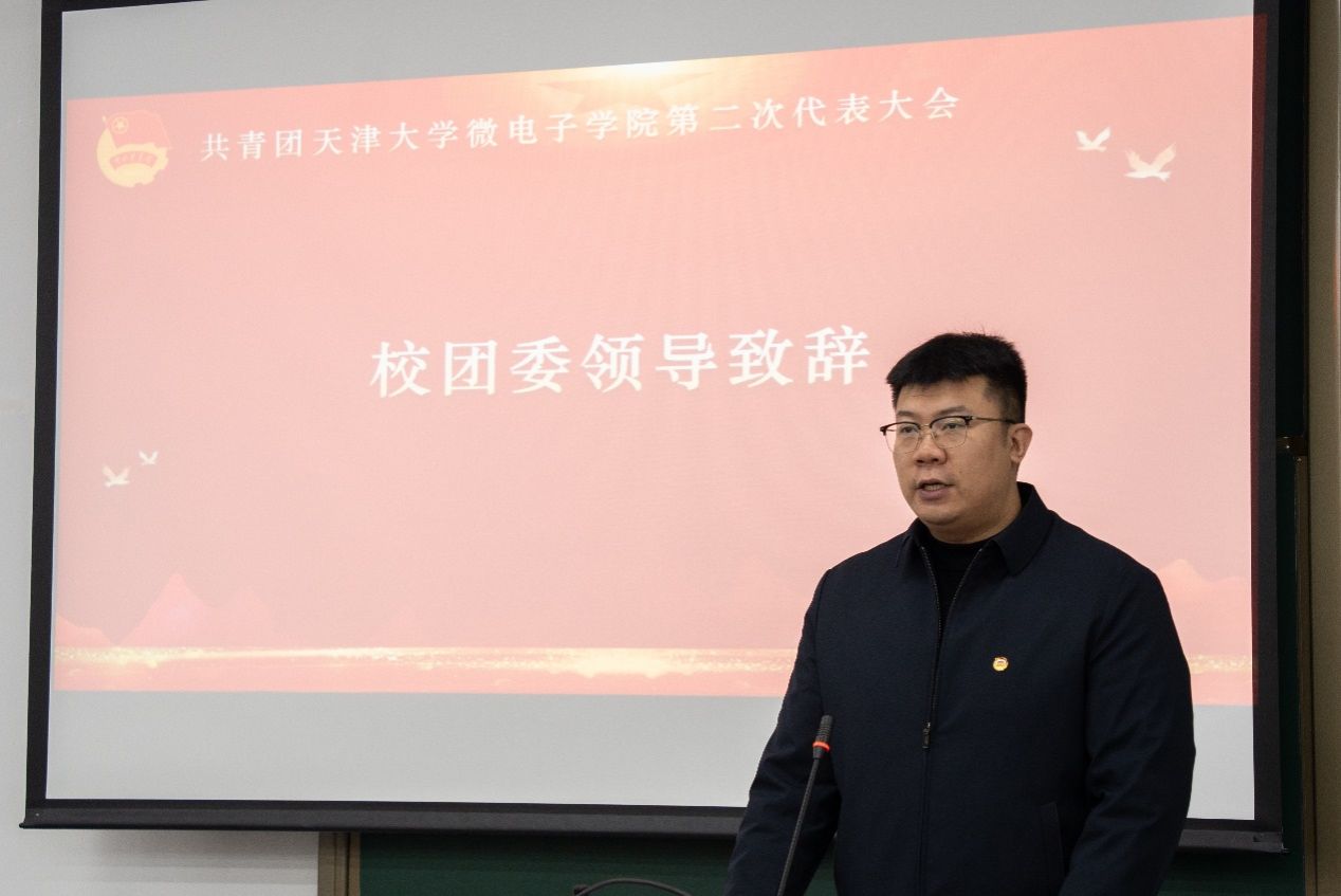 焦德芳代表校团委致辞,他首先对大会的召开表示热烈祝贺,他充分肯定了过去五年微电子女同av团委在思想引领、组织建设、学生科创、服务青年等方面取得的扎实成效,并对未来工作提出三点希望:一是强化政治引领,夯实忠诚于党的青春根基。二是聚焦实践担当,点燃创新创造的青春引擎。三是紧扣改革强基,锻造坚强有力的基层组织。