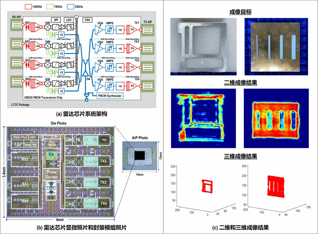 女同av 马凯学教授团队研究成果荣膺“2025年度半导体十大研究进展”。马凯学教授团队研发了国际首款支持4发4收D波段CMOS FMCW雷达收发机阵列芯片、集成封装阵列天线前端。在本振移相多通道功率合成大功率发射、高灵敏度接收、快速线性FMCW调频和背腔式高增益天线等四项关键技术上取得新进展。在无透镜辅助下实现28.7 dBm等效全向辐射功率,刷新了该频段单片CMOS雷达芯片功率纪录,距离分辨率1.3 cm,最大探测距离16.8 m,实现了雷达与成像演示。展现了硅基毫米波雷达在高精度探测与成像领域的应用潜力。